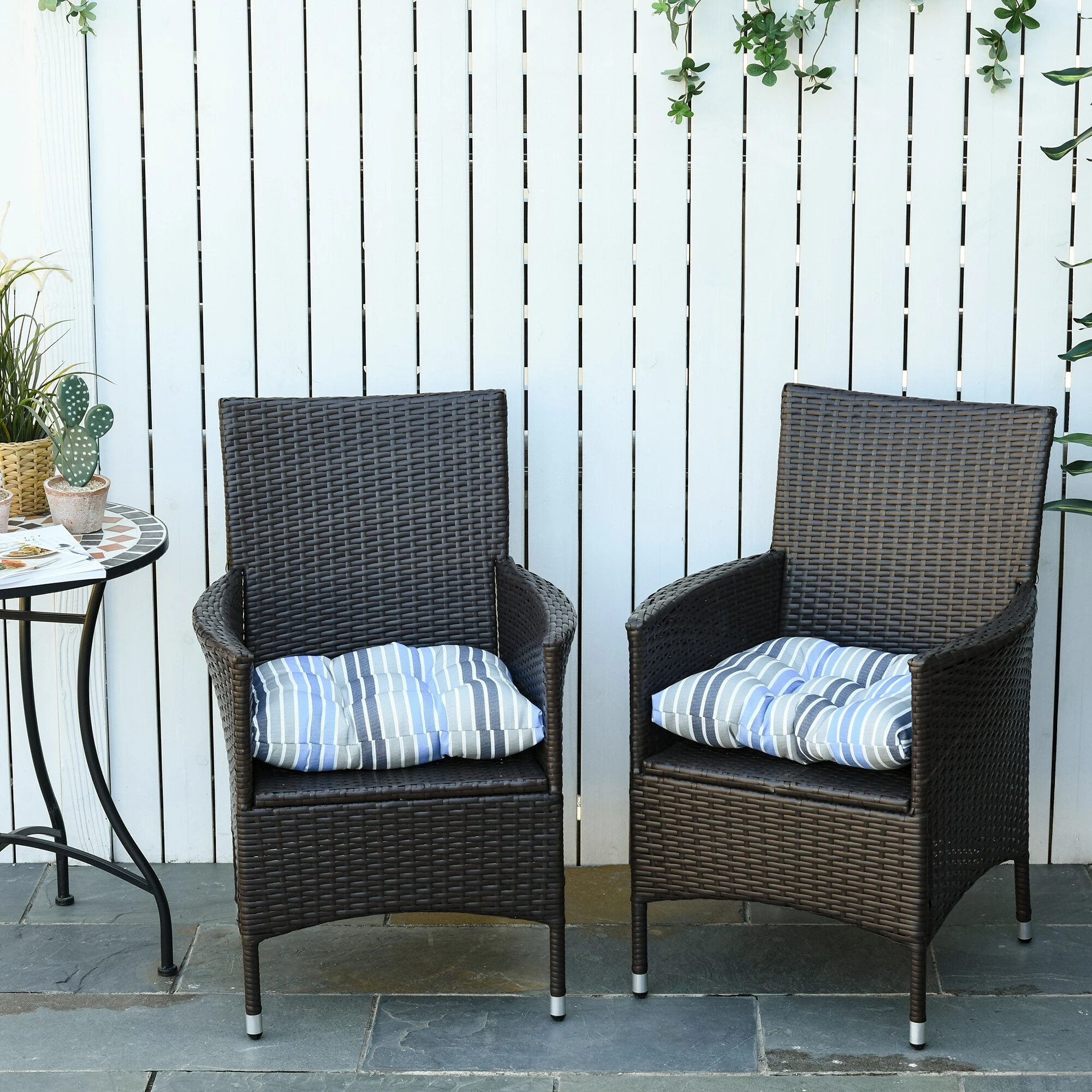 Bringen Sie Farbe auf Ihre Sitzgelegenheiten im Freien mit diesem Set aus zwei Sitzkissen. Die Bezüge aus atmungsaktivem Polyester haben ein gestreiftes Muster, das klassisch wirkt und gut zu allen Möbeln passt. Jedes Kissen ist mit einer dicken Füllung versehen, die dafür sorgt, dass Sie bequem sitzen, und mit Bändern versehen, um die Kissen fest zu fixieren. Einfach praktische Kissen, die Sie nicht verpassen dürfen!