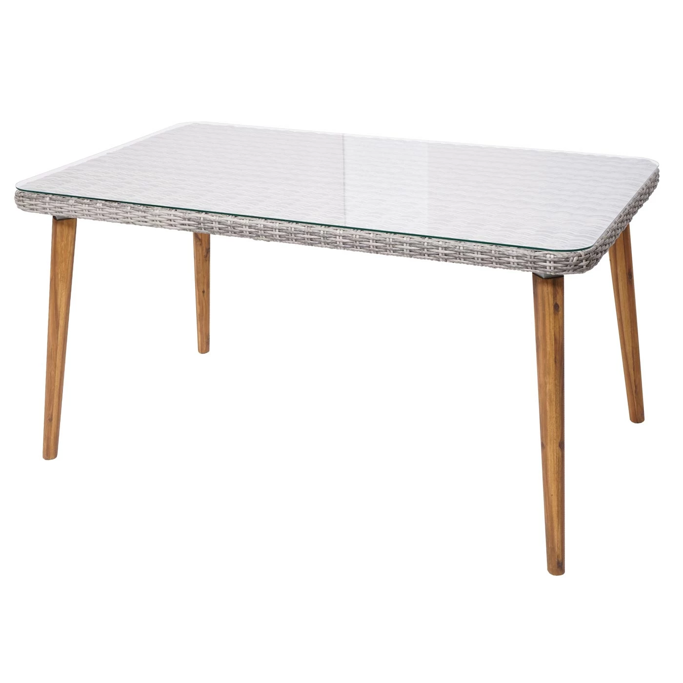 – Dieser Tisch überzeugt als wahrer Allrounder, denn er gibt nicht nur im Garten als Gartentisch, sondern auch in Wohnräumen als Esstisch eine hervorragende Figur ab. Die Kombination aus Poly-Rattan und Glas verleiht dem Balkontisch eine schicke Optik.