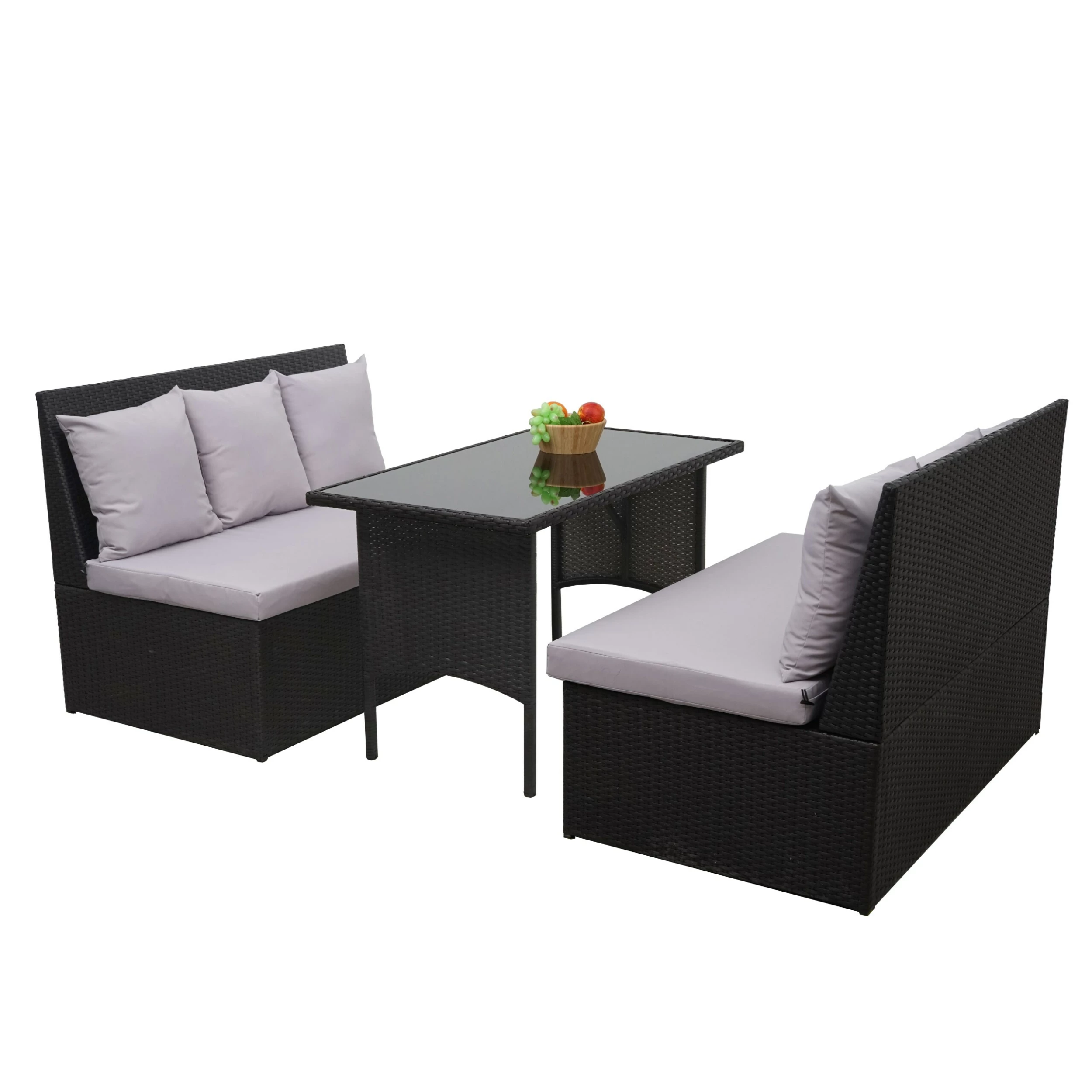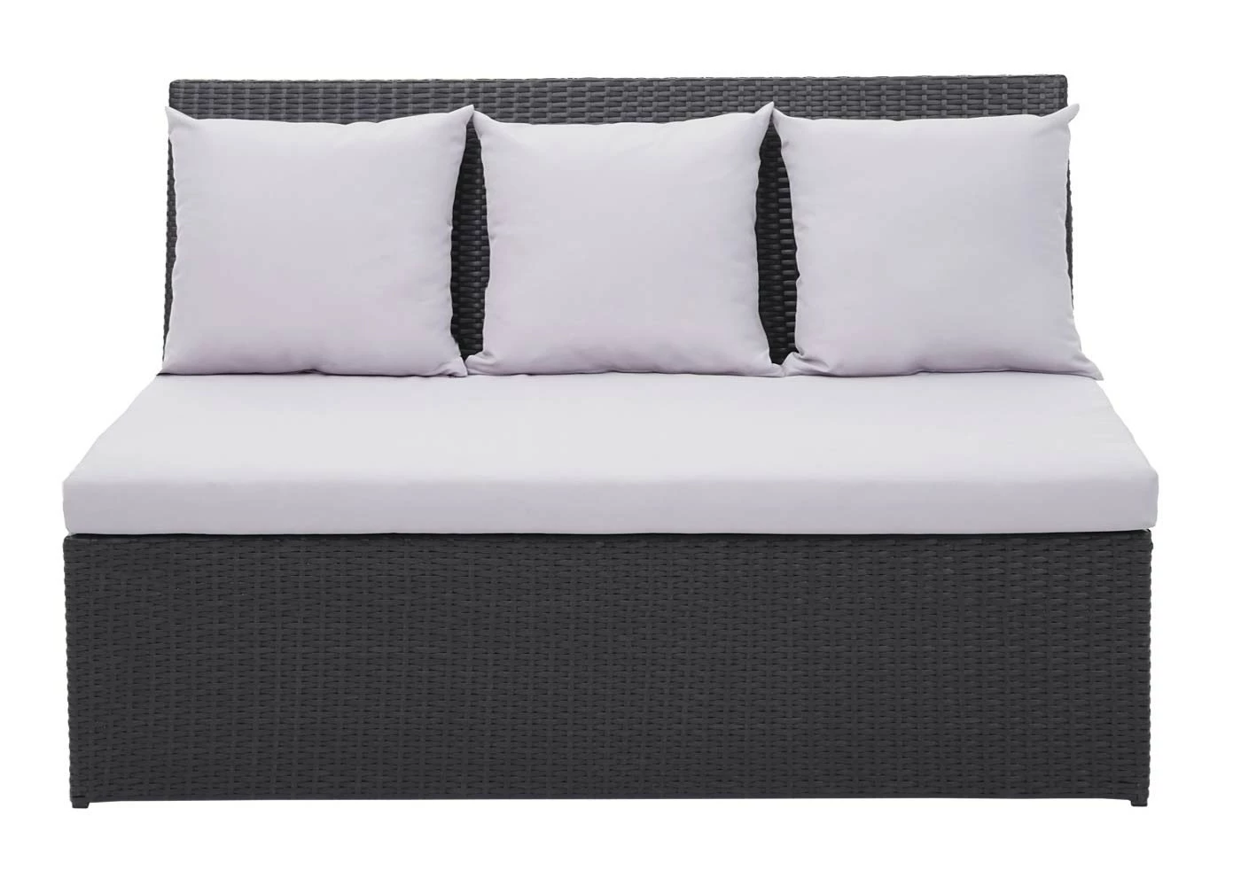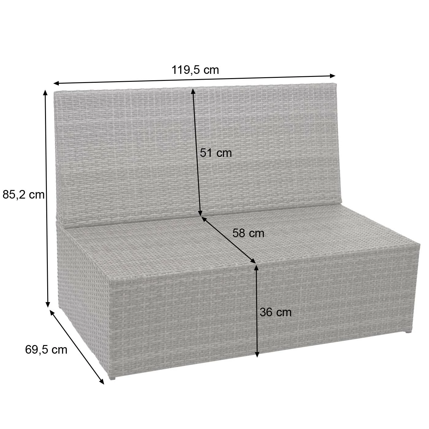 Dieses Poly-Rattan-Set ist schlicht, solide und lässt sich beliebig mit anderen Möbeln aus der G16-Serie kombinieren. Das Rattan ist aus durchgehendem Flechtwerk gefertigt und neigt nicht zum Fasern. Auf Armlehnen wurde bei diesem Sofa verzichtet, da es so besser in der Gastronomie verwendbar ist. Um problemlos mehrere Sitzgruppen zu stellen wurde darauf geachtet, dass das Sofa Rücken-an-Rücken gestellt werden kann.