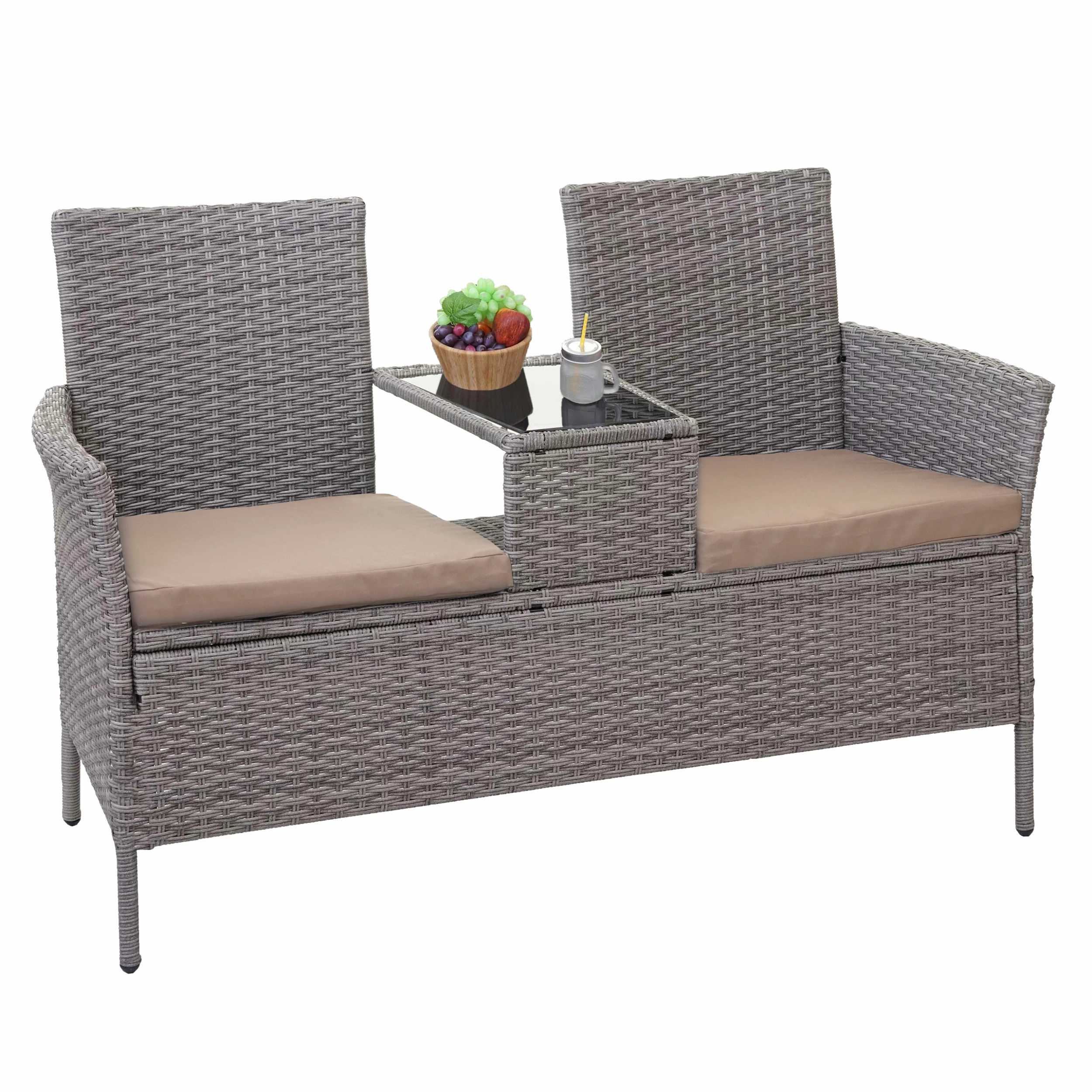 Egal ob Balkon, Terrasse oder im Garten – dieses zeitlose Gartensofa gibt immer und überall eine gute Figur ab und fügt sich nahtlos in jede Umgebung ein. Gut verarbeitet, ist dieses Produkt der ideale Anlaufpunkt für alle, die ein Plätzchen mit dem gewissen Etwas suchen. Ein Highlight dieser bezaubernden Gartenbank ist der integrierte Tisch, der die Bank in der Mitte teilt. Getränke, Sonnencreme oder kleine Snacks können einfach auf dem Tisch abgelegt werden. Nun kann die Entspannung in der Sonne beginnen. So wird diese Sitzgruppe ganz bestimmt zu Ihrem neuen Lieblingsplatz.