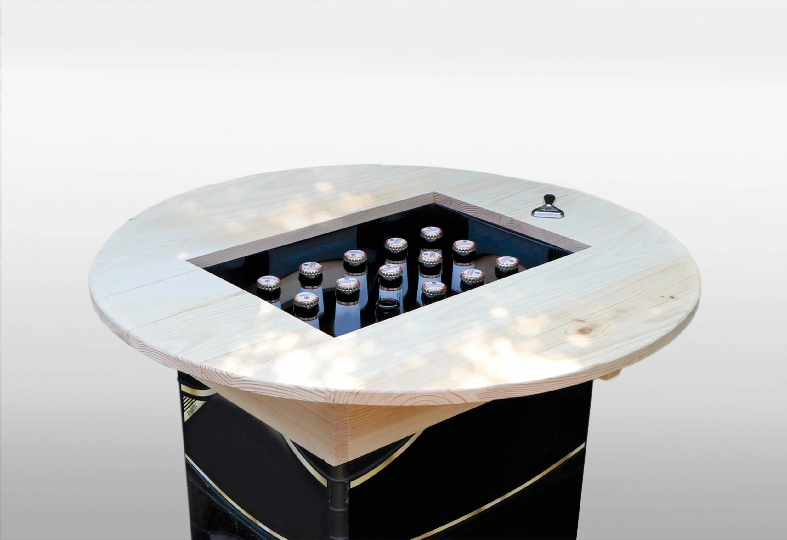 Ein trendiger Hingucker auf jeder Gartenparty. Dieser runde Bierkastenaufsatz kann als Steh- und Beistelltisch zum Einsatz kommen. Passend für alle Standard-Bierkästen (340 x 400mm) und Standard-Getränkekisten (340 x 400mm) ist dieser Aufsatz universell einsetzbar. Gefertigt aus massivem Kiefernholz wird dieser bereits fertig montierte Aufsatz an Sie ausgeliefert. Durch die lackierte Oberfläche ist eine Reinigung jederzeit problemlos möglich.