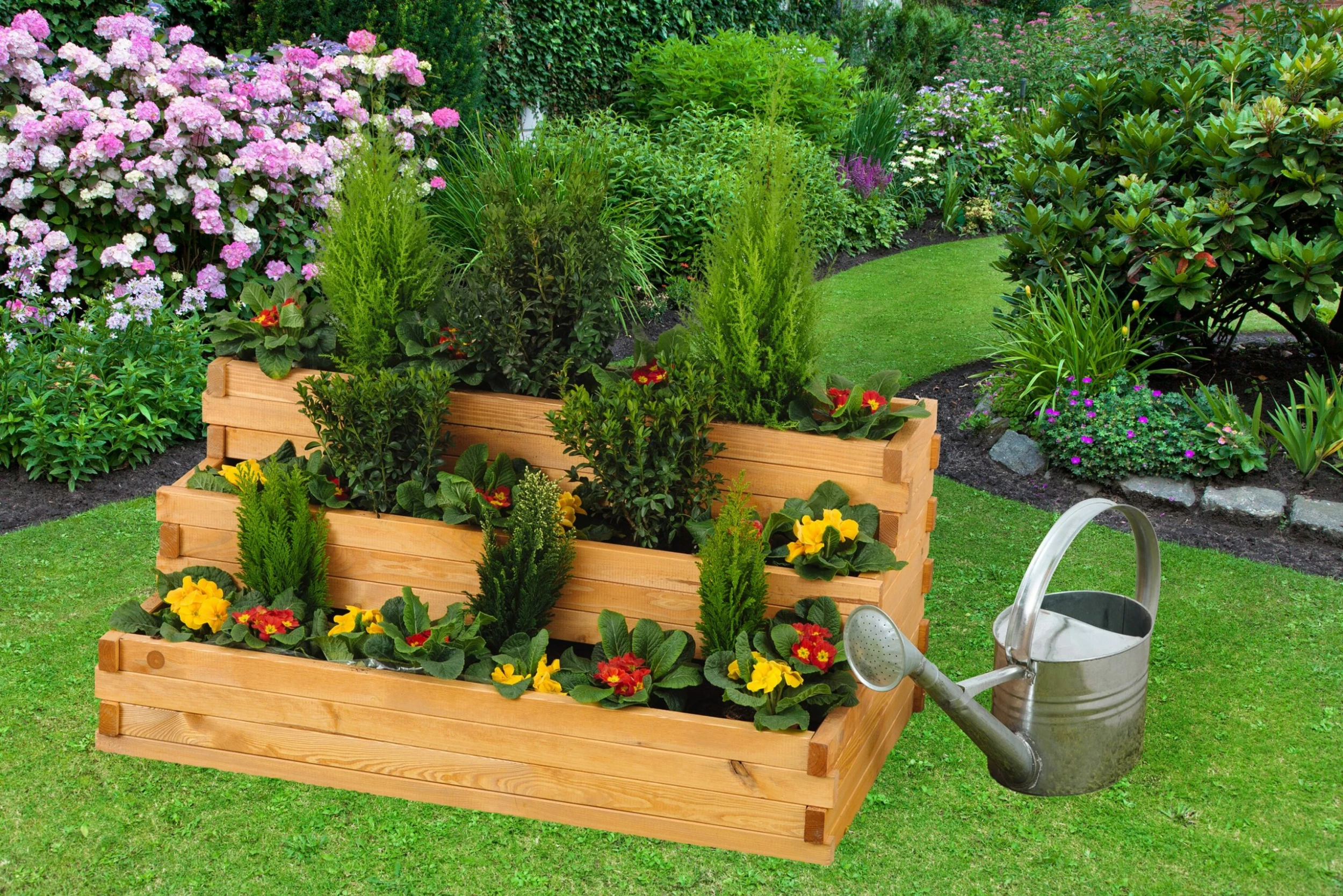 Das Highlight unserer Toskana Serie: die Treppe bietet viel Platz für Gestaltungsmöglichkeiten verschiedenster Pflanzen. Die praktische Pflanzfolie wird für jede Etage mitgeliefert.