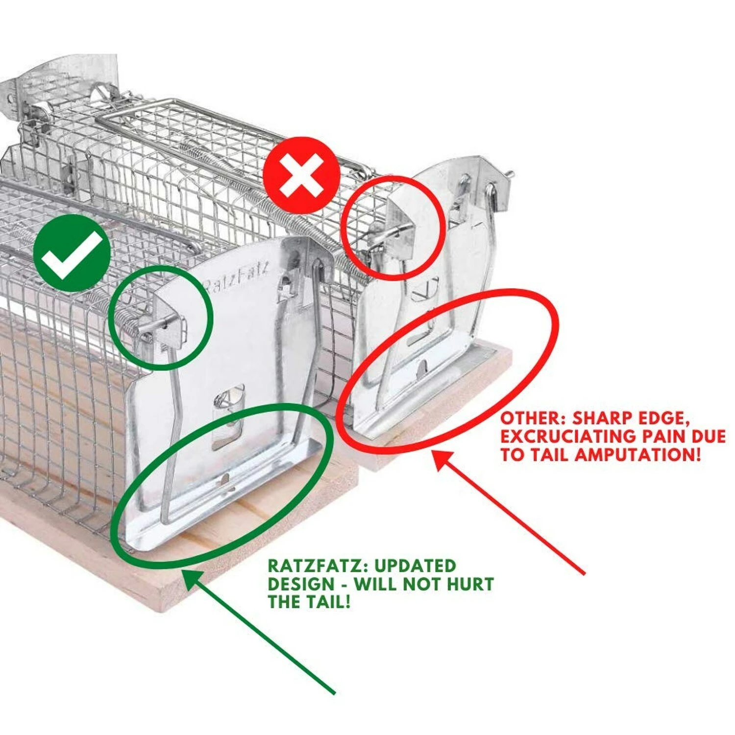 - Deutsche Entwicklung – Der Name Ist Programm: Diese RatzFatz Lebendfalle, Modell: MBM-01, wurde in Hamburg entwickelt und fängt Mäuse, kleine Ratten und ähnliche Kleintiere sehr effektiv lebend ein