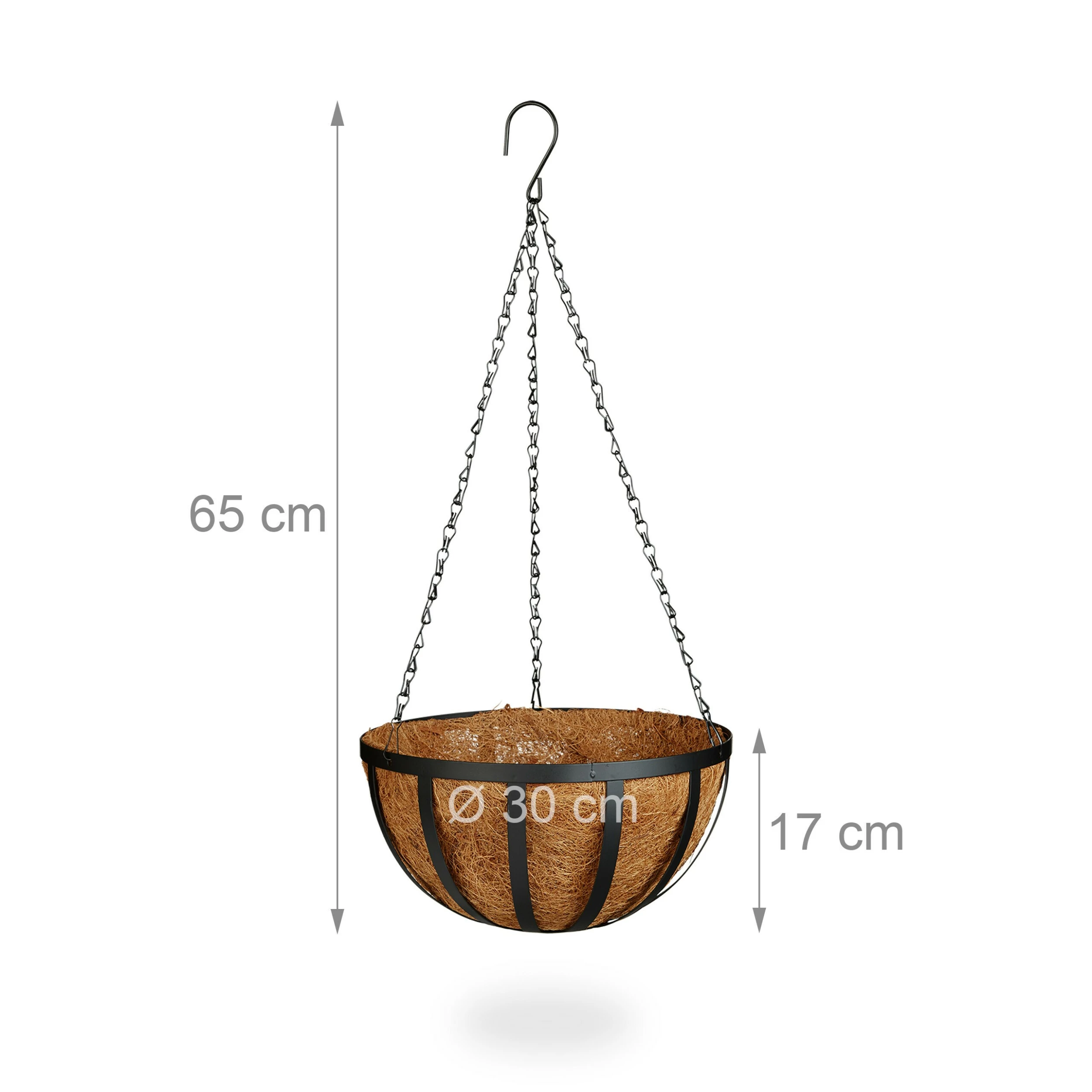 Die Blumenampel mit Hängekörben aus Metall mit Kokoseinlagen ist durch ihr mediterranes natürliches Design ein echter Hingucker. Mit einem Haken und einer Kette an jedem Korb können die Körbe aufgehängt werden.