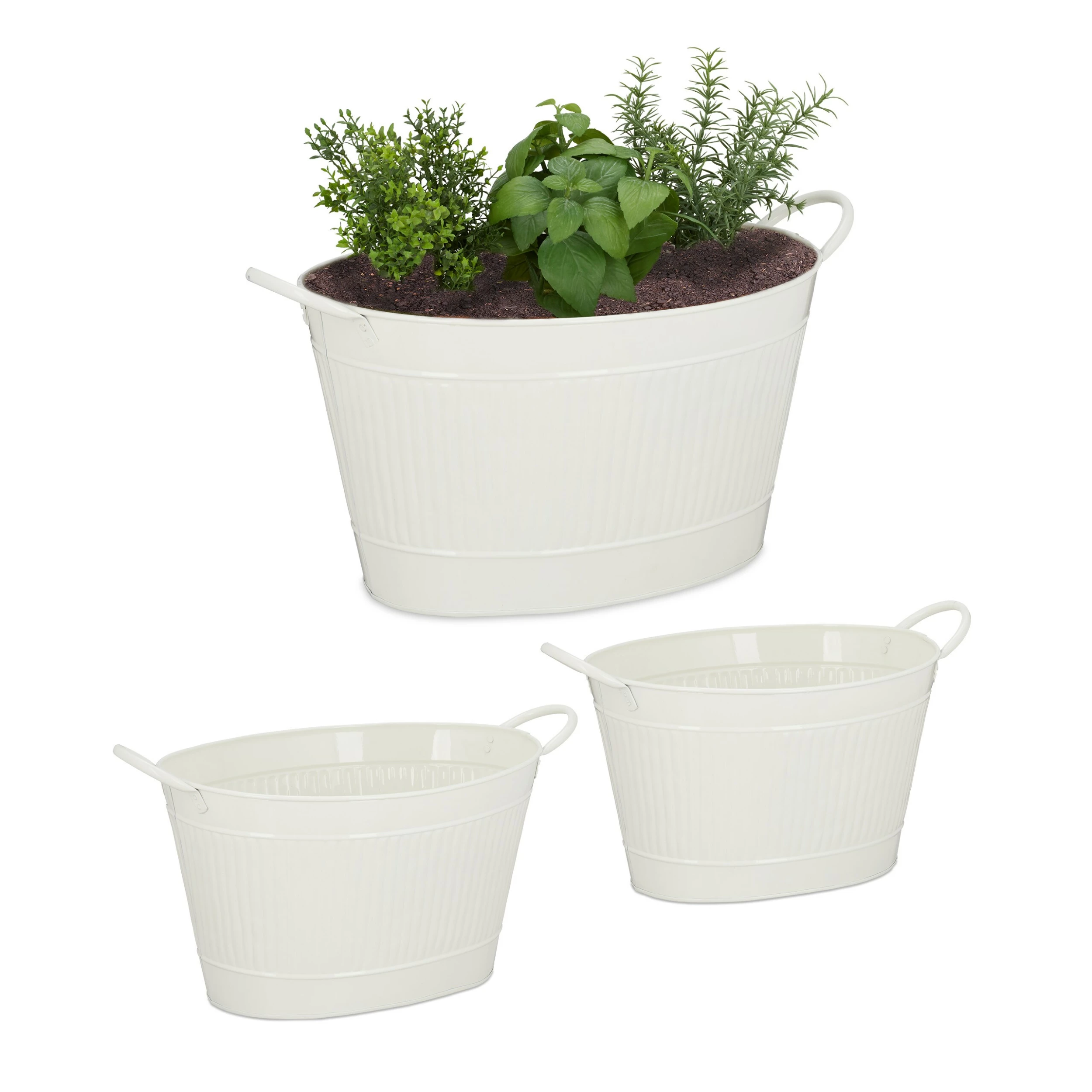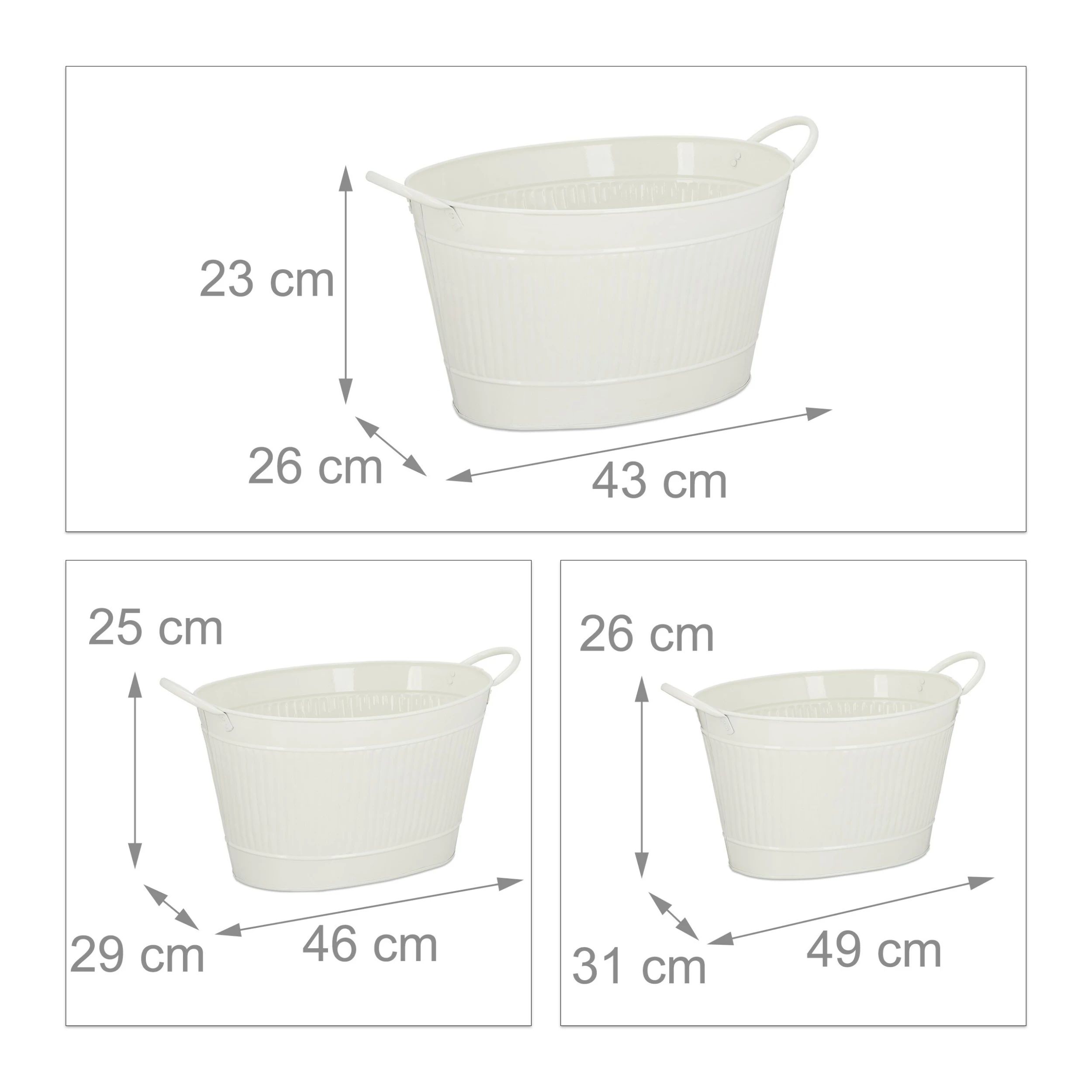 Das Dekowannen 3er Set im rustikalen Zinkwannen-Look präsentiert hervorragend Pflanzen auf Balkon, Terrasse oder im Garten. In die Pflanzwannen können Blumen und Kräuter gepflanzt werden oder Sie nutzen Sie lediglich als dekorativen Übertopf. Die wasserdichten Metallwannen sind für zahlreiche Outdoor Arrangements geeignet und können nebeneinander aufgestellt oder getrennt voneinander mit ihrem rustikalen Charme überzeugen. Genauso gut lassen sich die ovalen Gartenwannen aber auch als Eiskübel für Getränke auf der nächsten Sommerparty verwenden.