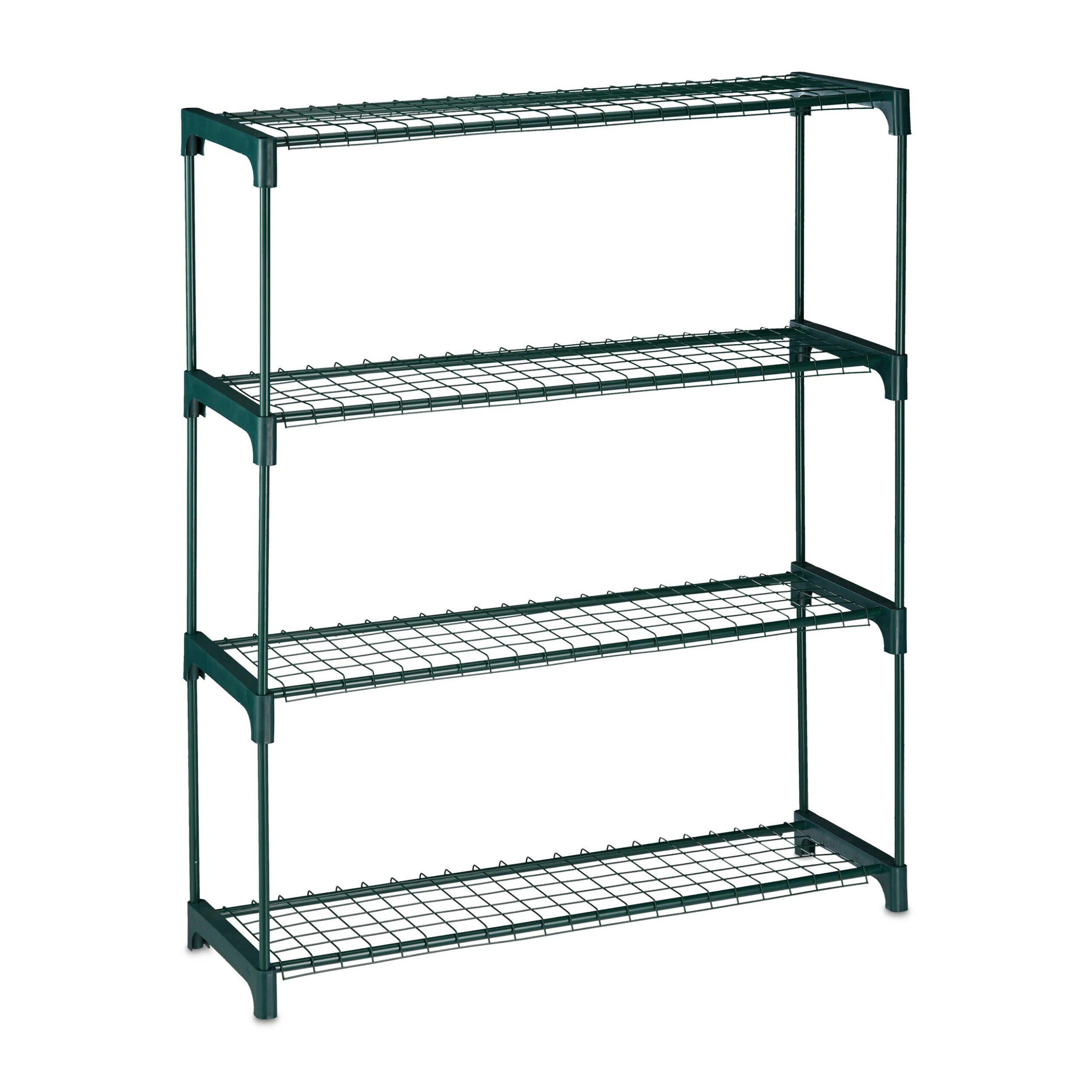Die Pflanzenbank schafft endlich den nötigen Platz, um Ihre geliebten Blumen und Pflanzen dekorativ zu präsentieren. Gestalten Sie Ihre persönliche kleine Pflanzenecke in Ihrer Wohnung. Die grüne Pflanzentreppe besteht aus Kunststoff und vier Gitterablagen aus Metall. Das schlichte Design der Blumenbank fügt sich überall gut ein. Der Aufbau geht dabei kinderleicht von der Hand – einfach Zusammenstecken, schon ist das Pflanzregal einsatzbereit.
