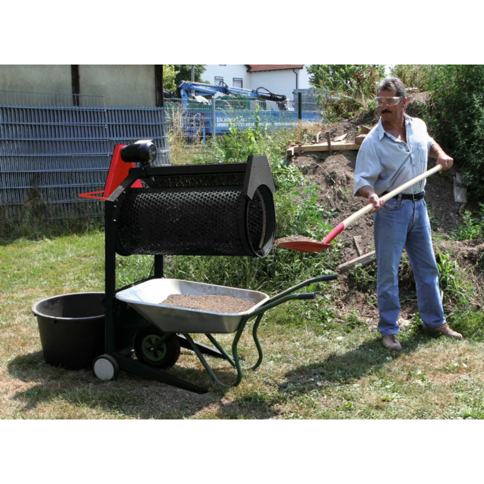 Der einstellbare Neigungswinkel der Siebtrommel, sowie die 10 mm Maschenweite im Siebeinsatz erleichtern das Sieben.