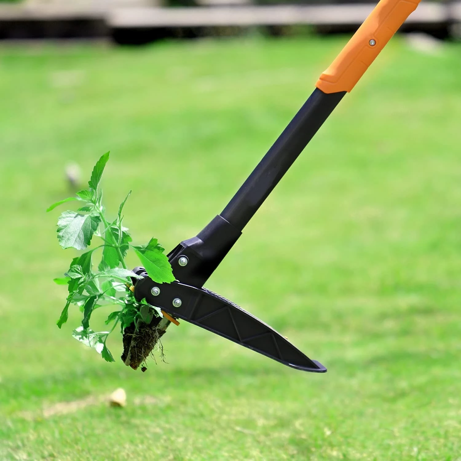 EINFACHE REINIGUNG – Die automatische Federvorrichtung des aktualisierten Unkrautjäters ermöglicht es Ihnen, Unkraut und Schmutz zu entfernen, indem Sie nach dem Ziehen von Unkraut einfach den beweglichen Griff in der Mitte drücken, was die Reinigung der Edelstahlkralle ohne Kraftaufwand einfacher und schneller macht
