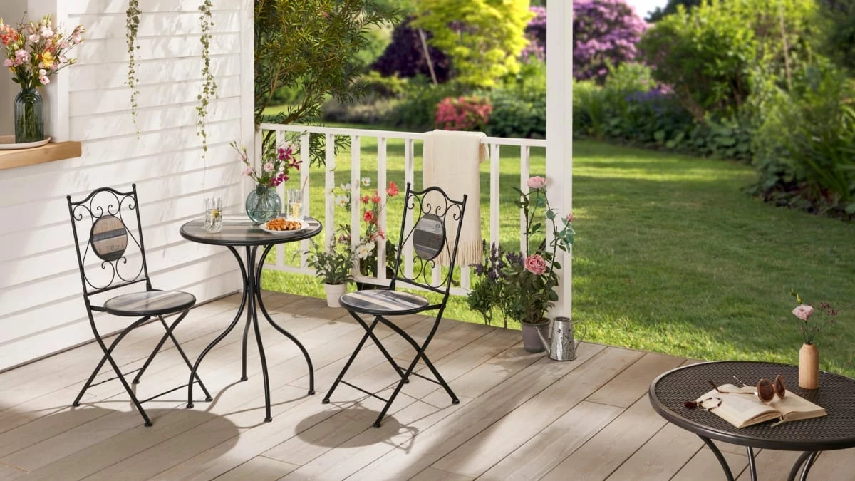 - Maße: Stühle ca. B38 x T38 x H92 cm, Tisch ca. H75, Ø60 cm