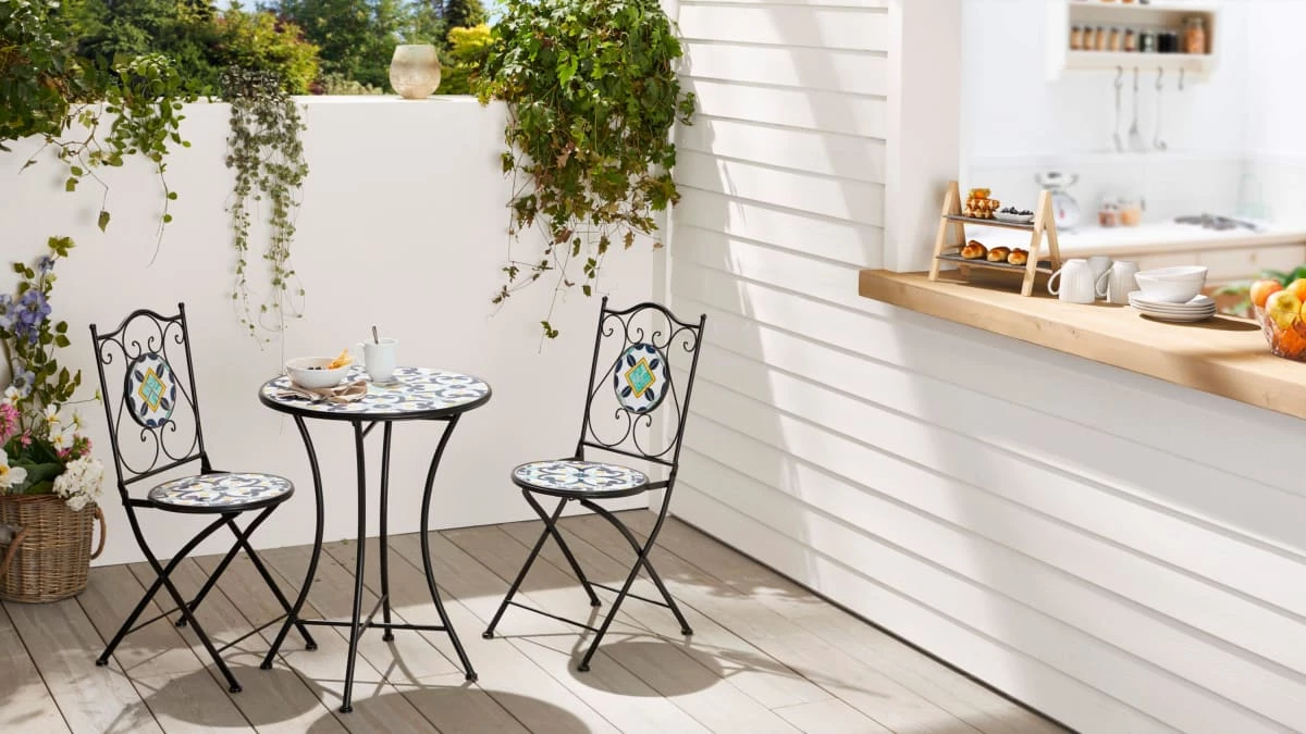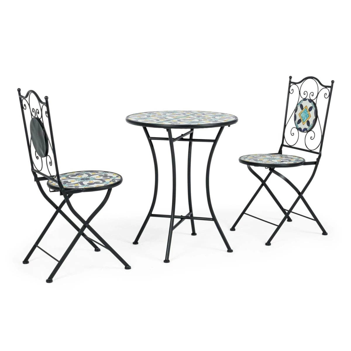 - Maße: Stühle ca. B38 x T38 x H92 cm, Tisch ca. H75, Ø60 cm