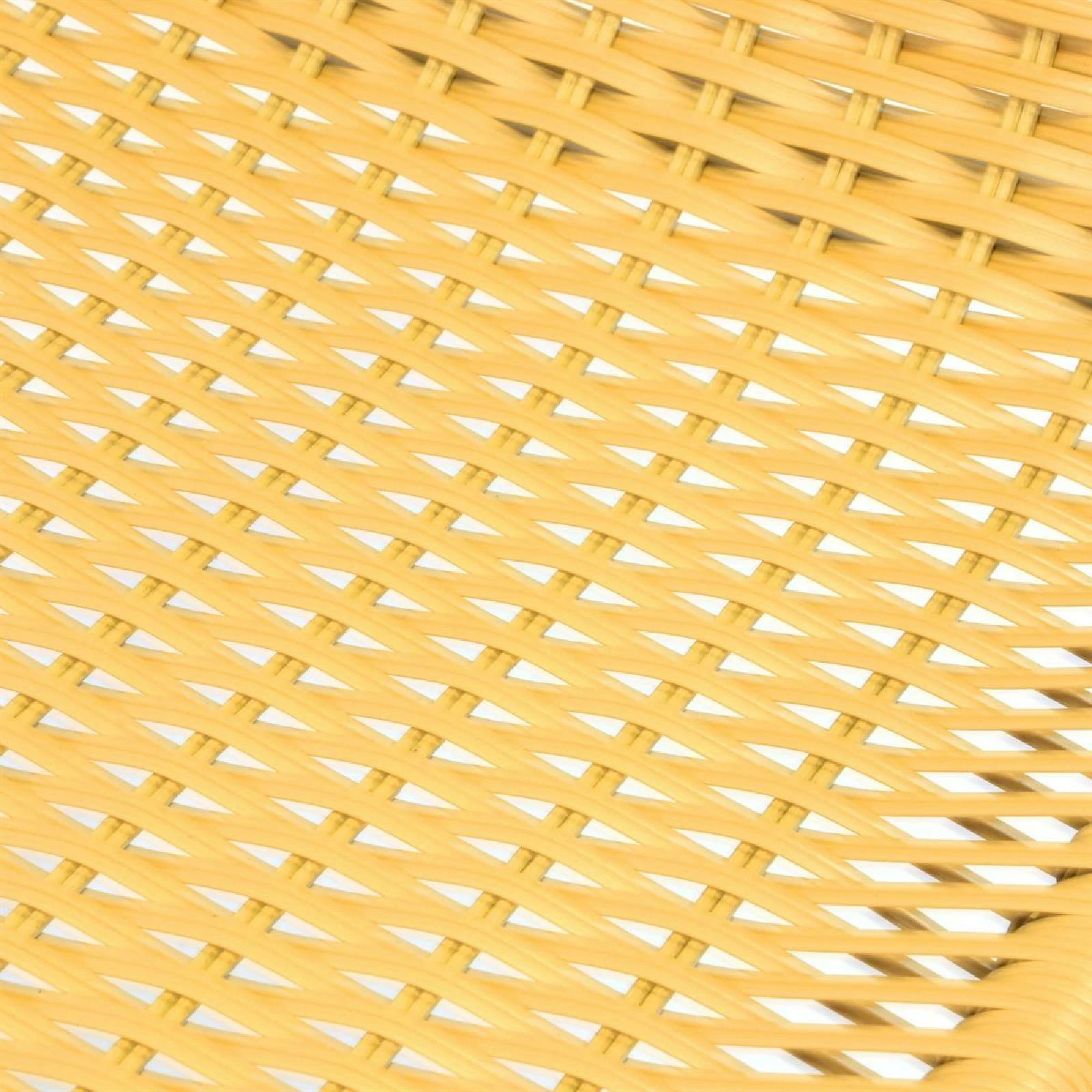 Das Gestell besteht sowohl beim Stapelstuhl als auch beim Gartentisch aus pulverbeschichtetem Stahl in Hammerschlag-Optik. Das beige Polyrattan der Stühle besteht aus Kunststoff, ist reißfest und interessant geflochten. Ein Rattanstuhl hat ein Gesamtmaß von ca. 72,5 x 53 x 65 cm, ein Gewicht von ca. 3 kg und eine Sitzfläche von ca. 38×38 cm. Der Tisch misst im Ø 60 cm, in der Höhe: ca. 73 cm. Das Gewicht beträgt ca. 5 kg.