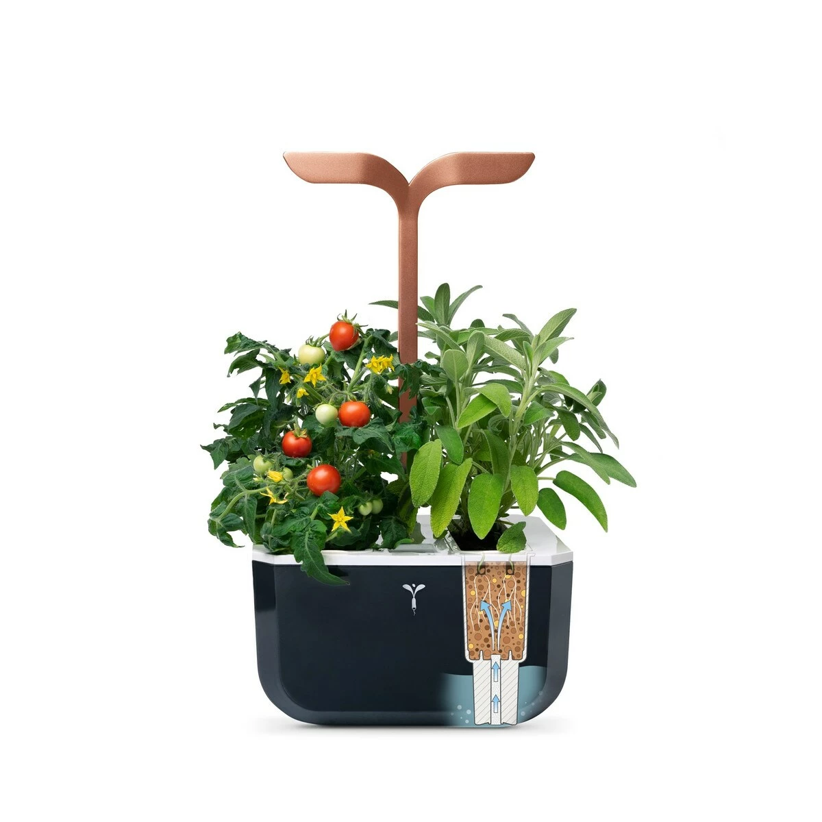Der Kräutergarten Exky von Véritable funktioniert autonom. Er liefert die Beleuchtung, Bewässerung und Nährstoffe für Ihre Pflanzen. Sie müssen nichts weiter tun, als zu ernten und zu genießen. Das passive Hydrokultursystem erlaubt eine automatische, wassersparende Bewässerung. Der Tank hält Wasser für bis zu drei Wochen; ist er leer, blinkt eine LED-Leuchte. Die Beleuchtung wird automatisch gesteuert: sie schaltet sich täglich für 16 Stunden an und 8 Stunden ab, um den natürlichen Kreislauf der Pflanzen nicht zu gefährden. Und das Beste: Das kompakte und schlanke Design des Exky passt auf jede Küchenzeile.